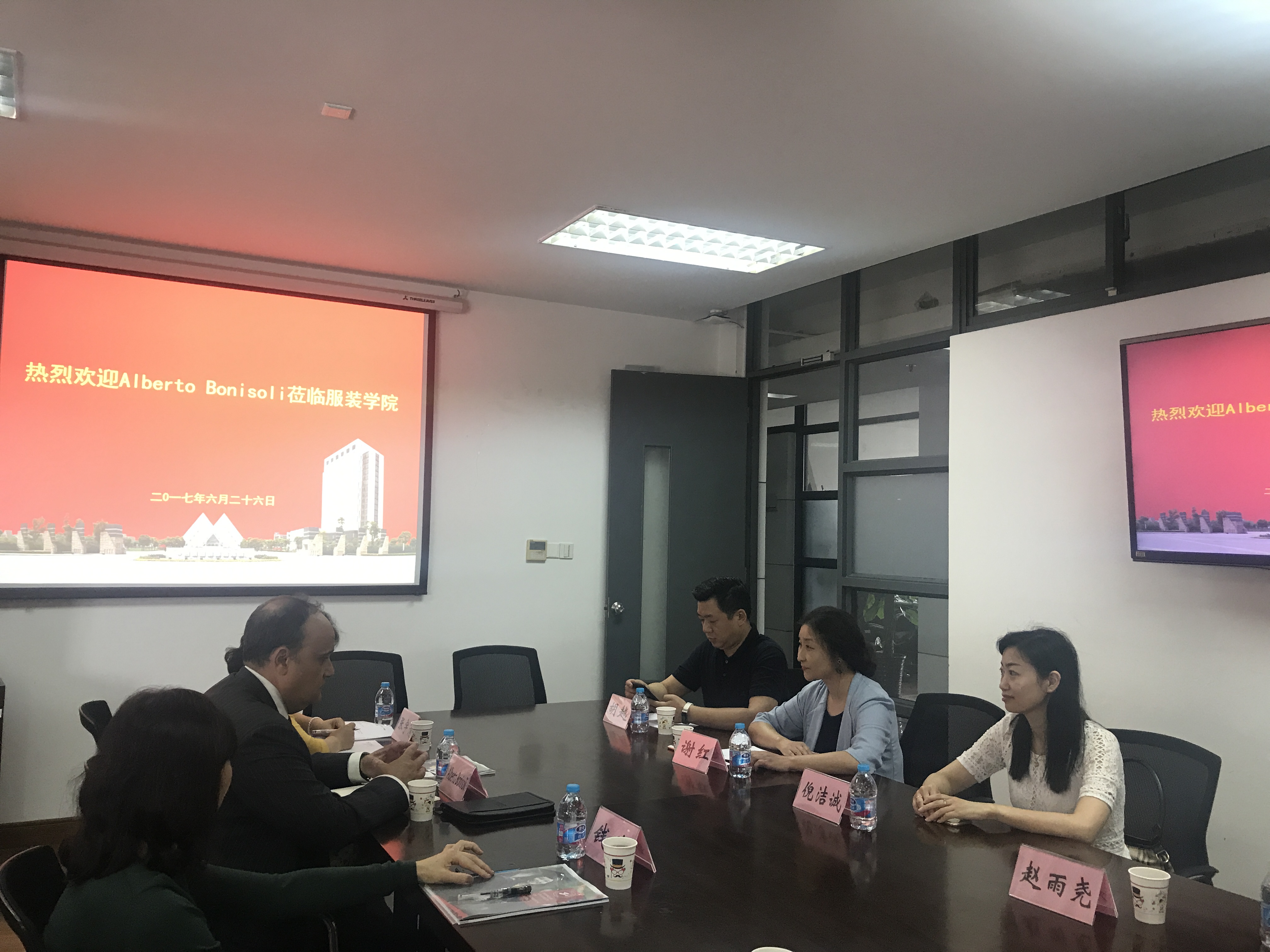 6月26日,意大利米兰新美术学院Alberto Bonisoli教授一行来到服装学院进行深入访问与交流,服装学院经理谢红、副经理胡越等4位老师参与了接待。