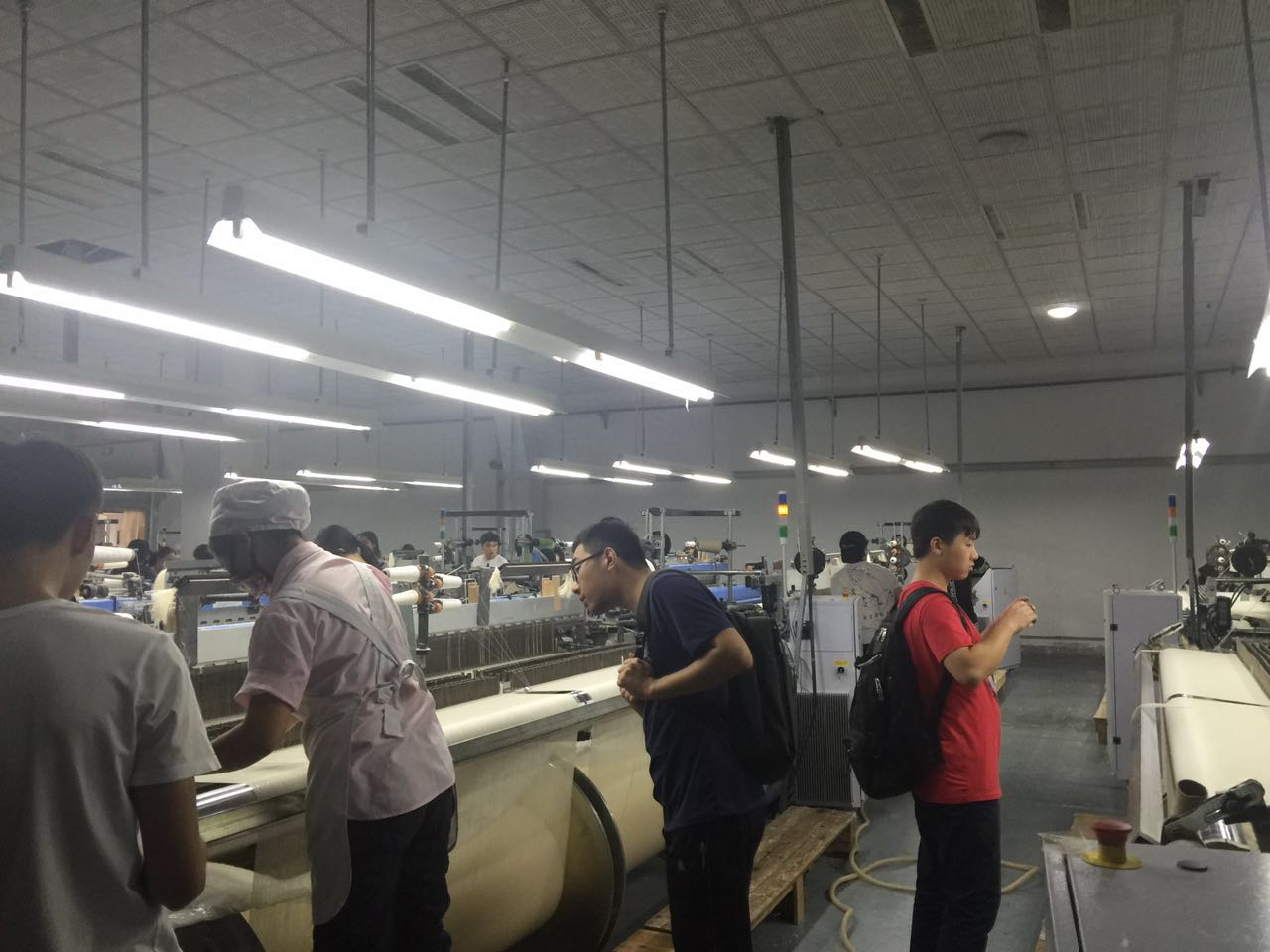 上海纺织(集团)有限公司全资子公司—上海裕丰科技有限公司成立于2007年3月,是集纺纱、织造、产品研发、服装生产、市场营销和贸易为一体的现代纺织企业,拥有一批先进的纺织生产设备,例如特吕茨勒清梳联机组、立达RSB-D401单眼高速并条机、JWF1415粗纱机、EJM178JL集体落纱细纱机、赐莱福AUTOCONER X5自动络筒机、倍宁格整经机、卡尔迈耶浆纱机、RS9500-340剑杆织机等成套设备,生产自动化程度高。此次参观的大丰园区棉纺织生产基地是上海裕丰科技有限公司拥有的两大基地之一,也是上海纺织(集团)有限公司在外省市投资规模最大的棉纺织生产基地,总占地面积约800多亩,员工900余人,已形成10万纱锭,107台布机的生产规模,具备赛络纺、紧密赛络纺、竹节纺等纺纱能力,公司产品种类繁多、档次高、销量好,主要定位于高档酒店全棉、麻等家居系列配套用品。走进裕丰的生产车间,纺织工程专业的员工们兴趣高昂,互动频繁,真实感受到了现代化纺织企业的高科技运作模式。