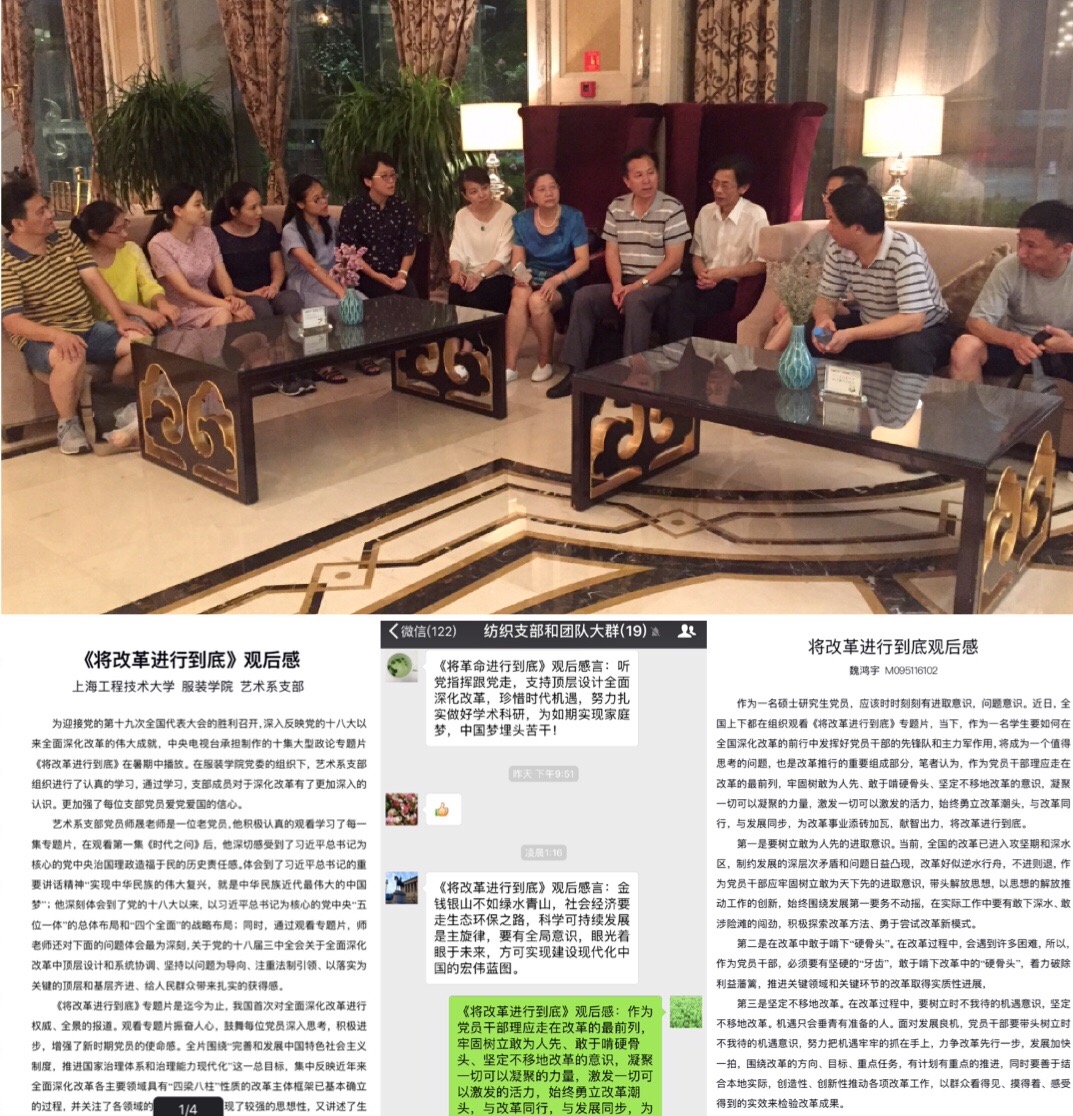 观看后,党员们纷纷表示触动很大,感触良多。服装艺术教工党支部书记张晓燕说,改革的过程和背后的故事是艰辛的,但同时也体现出了党对改革的决心,以及带领人民群众创造、创新和奋斗实现中华民族伟大复兴的信心。员工党员王康表示,作为当代老员工,我们应该坚决拥护国家的领导,支持中央进行改革,让人民群众走向小康,不忘初心,砥砺前行,实现中华伟大复兴的中国梦。