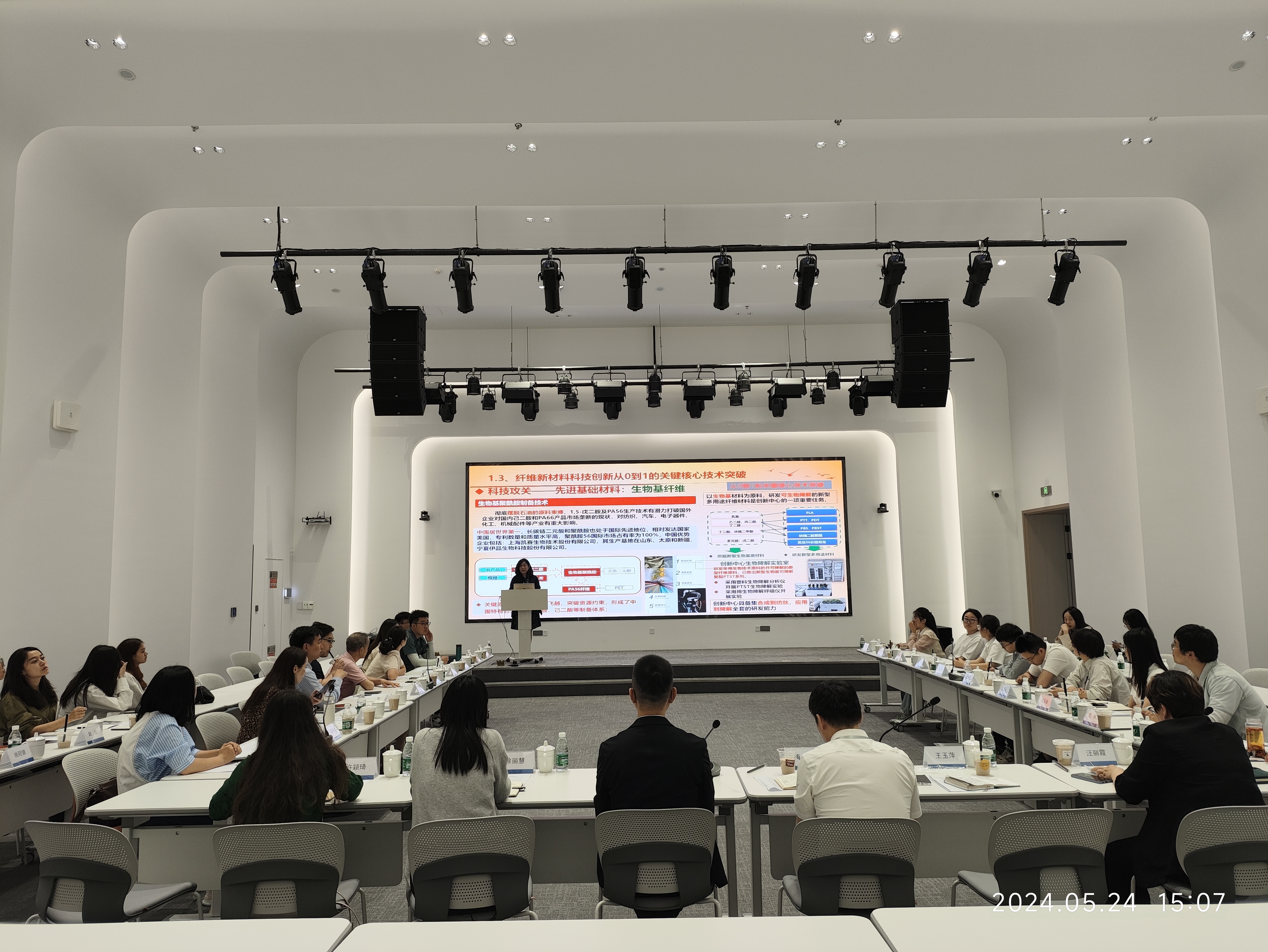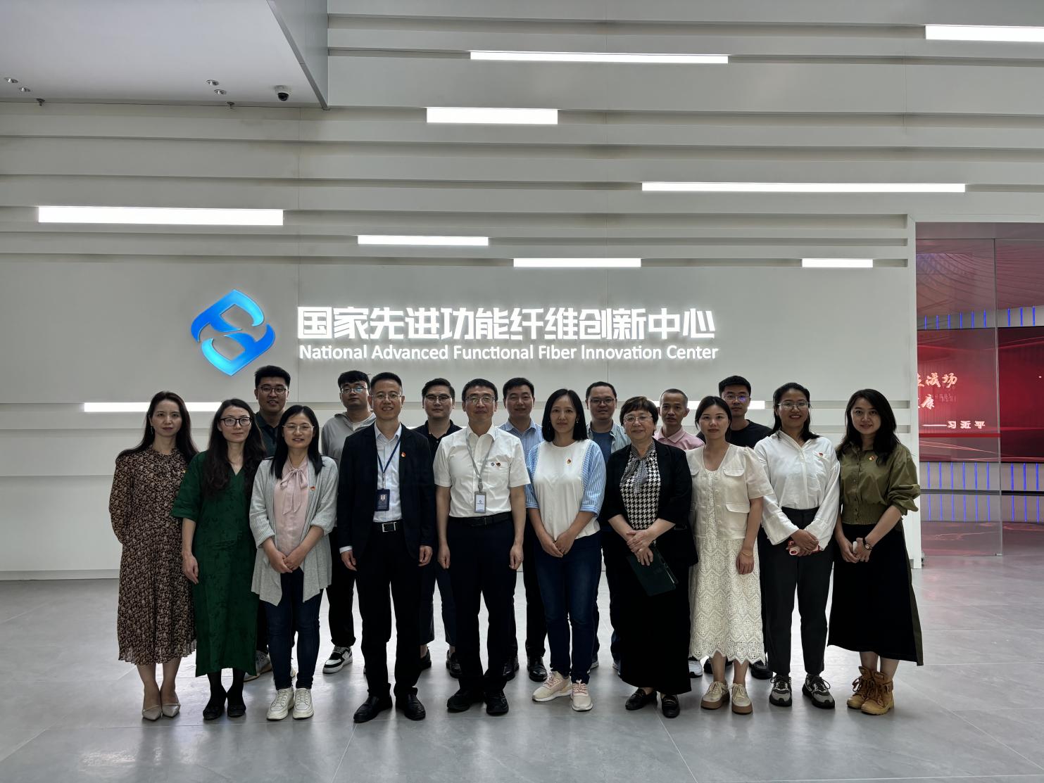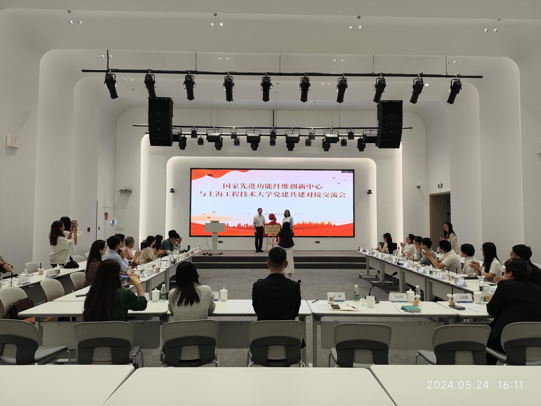 为促进高质量发展,积极探索党建共建的新型模式,5月24日纺织工程教工党支部在支部书记郑元生同志的带领下前往江苏苏州市国家国家先进功能纤维创新中心,与江苏新视界先进功能纤维创新中心有限公司党支部进行党建共建交流,旨在通过深入的座谈交流、党课学习,进一步加强双方的合作与沟通,共同推动支部建设与发展迈向新的高度。会议在国家先进功能纤维创新中心408报告厅举行,由创新中心工程技术总监/工业设计研究院常务副经理汪丽霞同志主持,创新中心有限公司董事长梅锋同志、中心主任/党支部书记王玉萍同志、技术总监徐锦龙同志、研发副部长张林同志、工业设计研究院副经理刘庆备同志、办公室主任/党支部副书记田会双同志等40余人出席了此次会议。