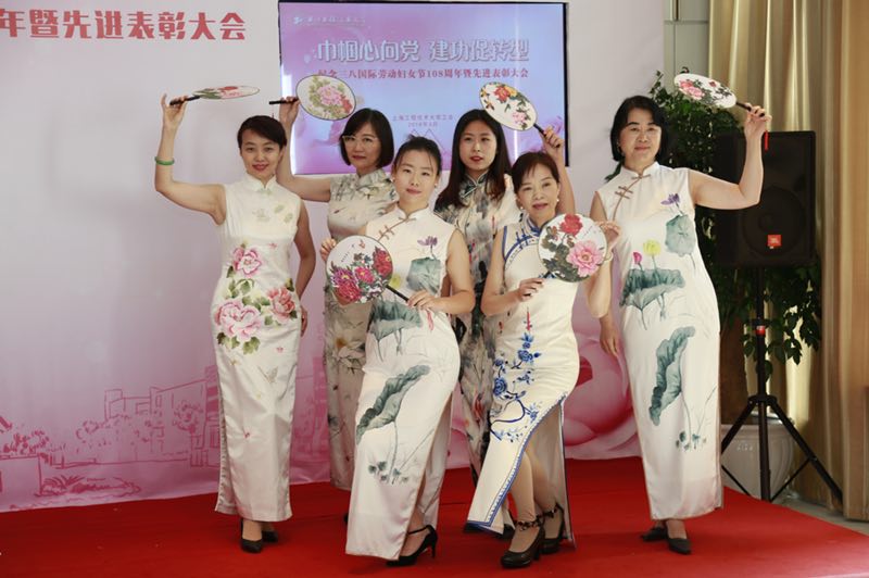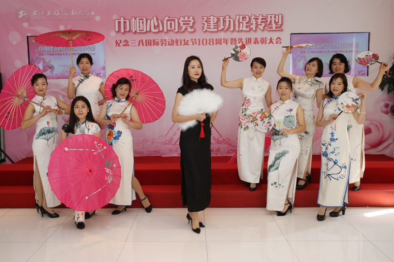 会上,服装学院、与旗袍文化研究中心携手员工合唱团,呈现了一场表演形式多样,内容精彩纷呈的节目盛宴,展现了新时代工程大女教师的绚丽风采。
