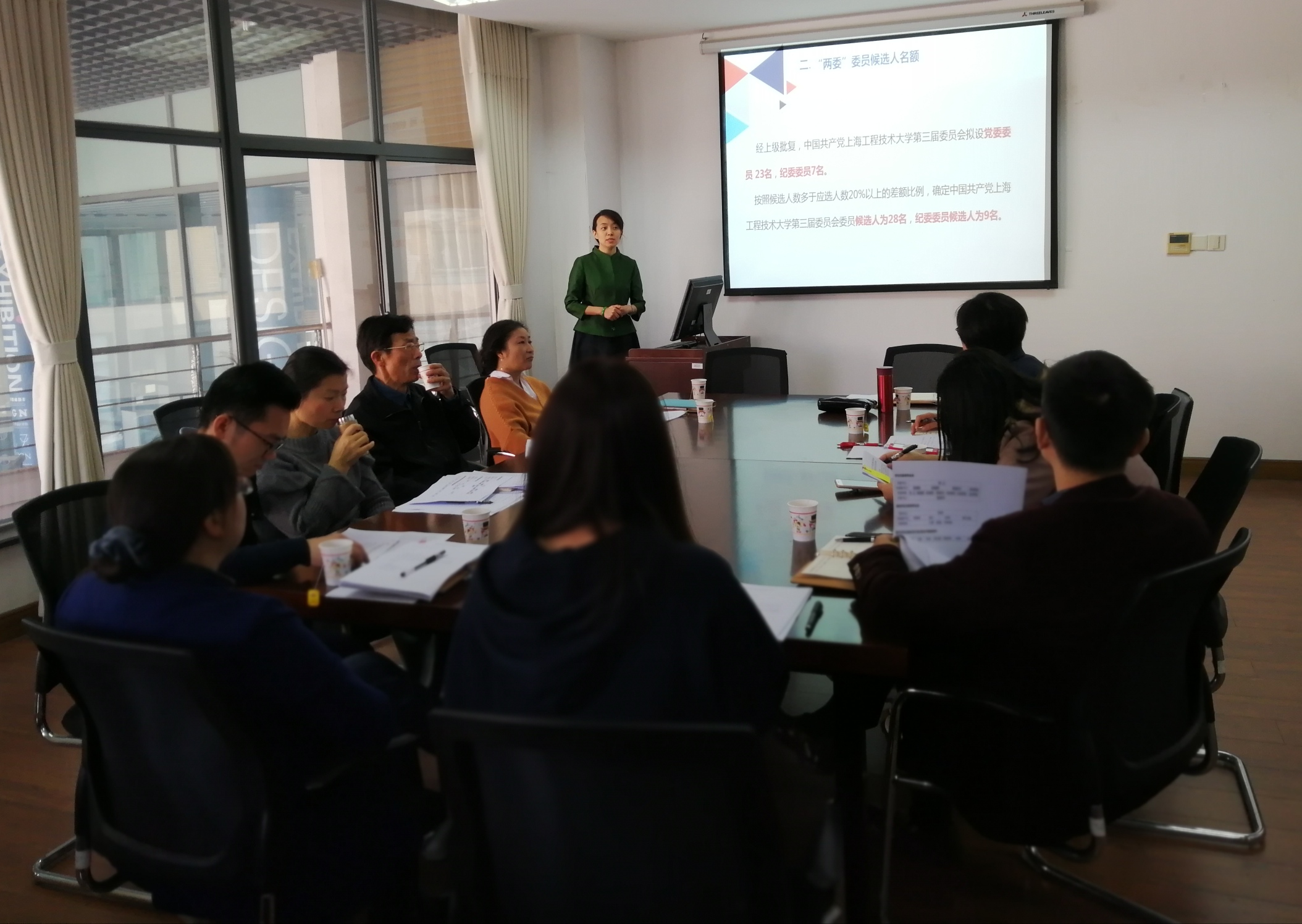 会上,服装公司党委书记袁蓉首先讲解了党委委员、纪委委员产生的程序,候选人名额,预备人选提名原则,候选人条件,强调了候选人预备人选提名程序和时间安排。接着,袁蓉书记传达了公司党委书记李江同志提出的三点要求,一是要提高政治站位,从党的工作需要和学校全局出发,以对党的建设和学校事业高度负责的态度发表意见;二是要正确行使党员的民主权利,真正把那些党性强、作风正、实绩突出、群众公认的同志推荐上来;三是要严守政治规矩,把纪律和规矩挺在前面,坚决做到“九严禁”。