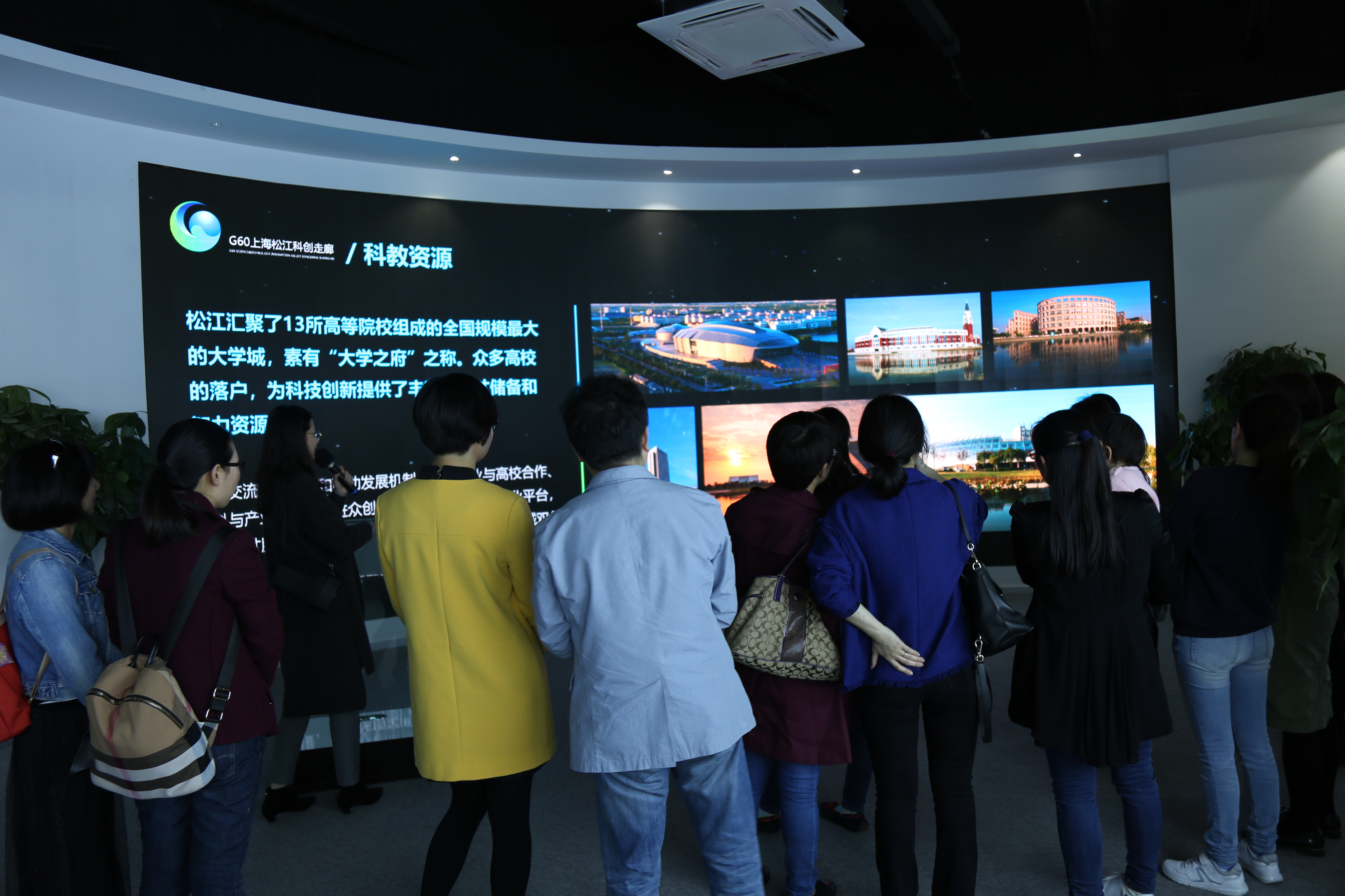“G60上海松江科创走廊”,是以G60高速公路为中轴,构建以松江新城为核心的“一廊九区”空间布局和“科创承载、总部研发、高端制造、服务集成、商业商务及现代物流相辅相成”的功能布局。规划馆运用高科技的元素,展示了技术的魅力和松江日新月异的变化,还原了“松江制造”向“松江创造”转变过程。
