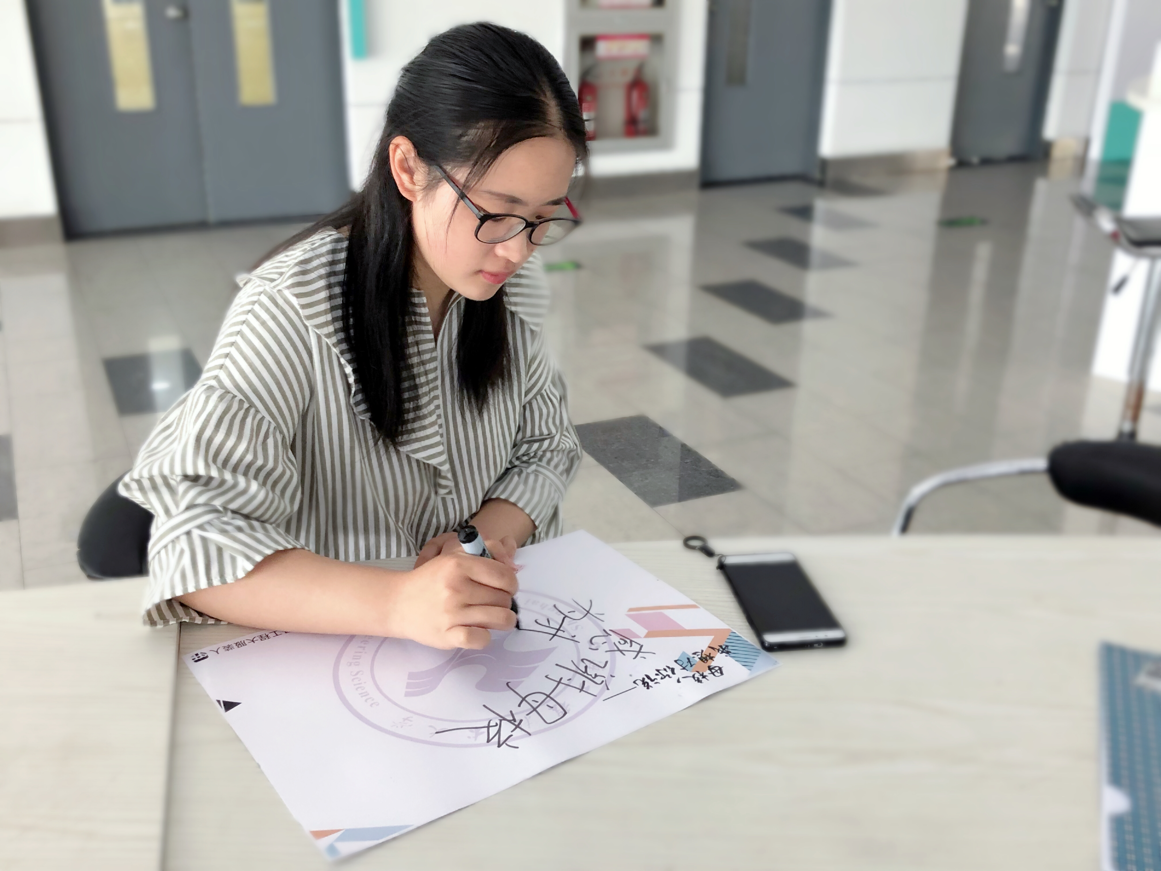 会谈后,穆晓绮为母校写下了自己的祝福语,以及对学弟学妹鼓励——“感谢母校,为我指明方向,给我勇气和自信”。小组成员对穆晓绮同学的祝福表示由衷的感谢,也祝福她在今后的学习工作中一帆风顺。