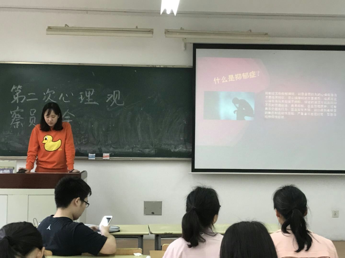 4月2日下午16:30,服装学院心理协会在教学楼B102开展关于“抑郁症的心理疾病”为主题的观察员主题培训活动,本次活动由黄佩珺同学主讲。