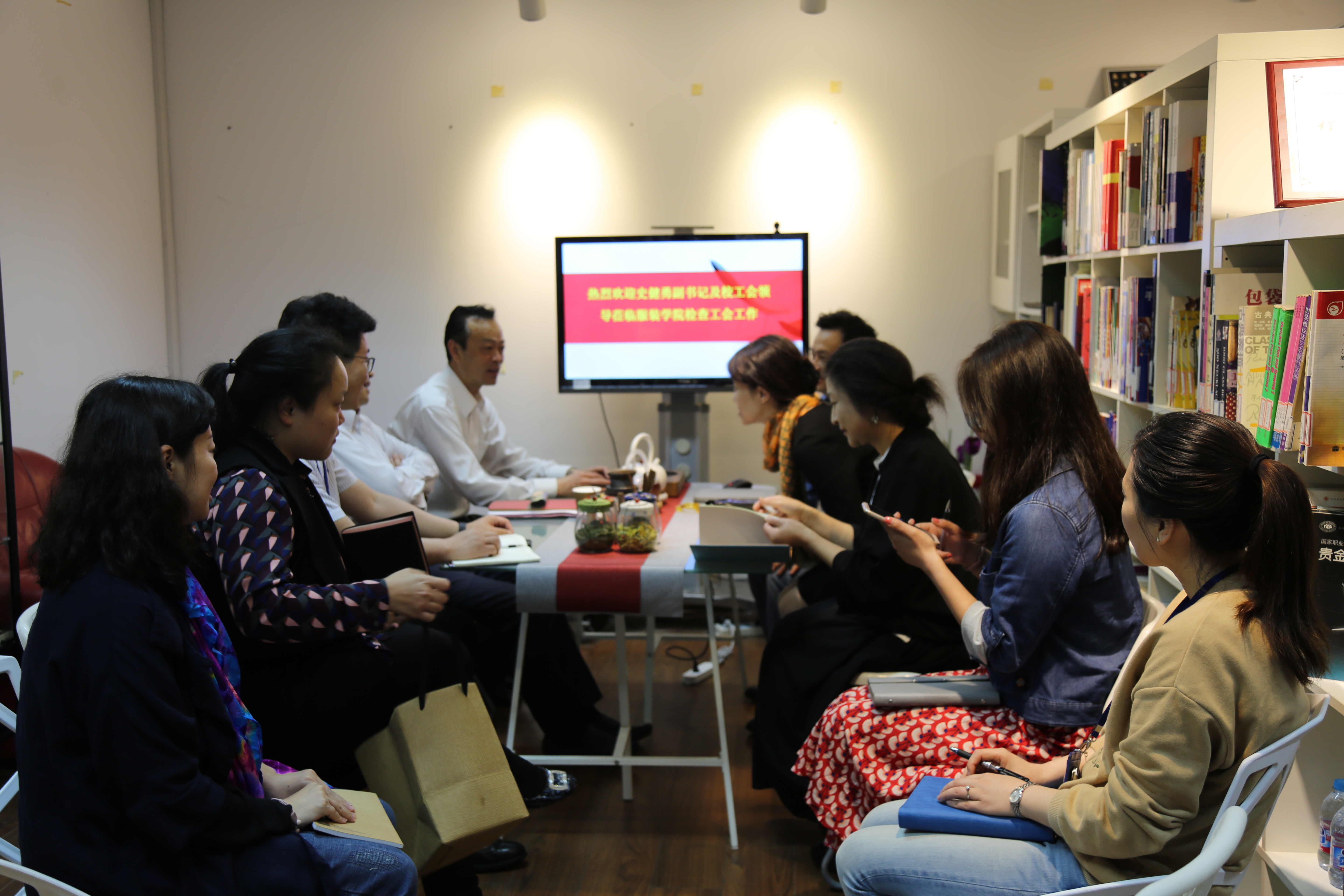 4月23日下午,公司党委副书记、工会主席史健勇,校工会常务副主席柳如荣,校工会副主席刘江一行来服装学院调研院工会工作。公司党委书记袁蓉,经理谢红,院工会主席王黎明,及院工会委员等陪同参加了调研。