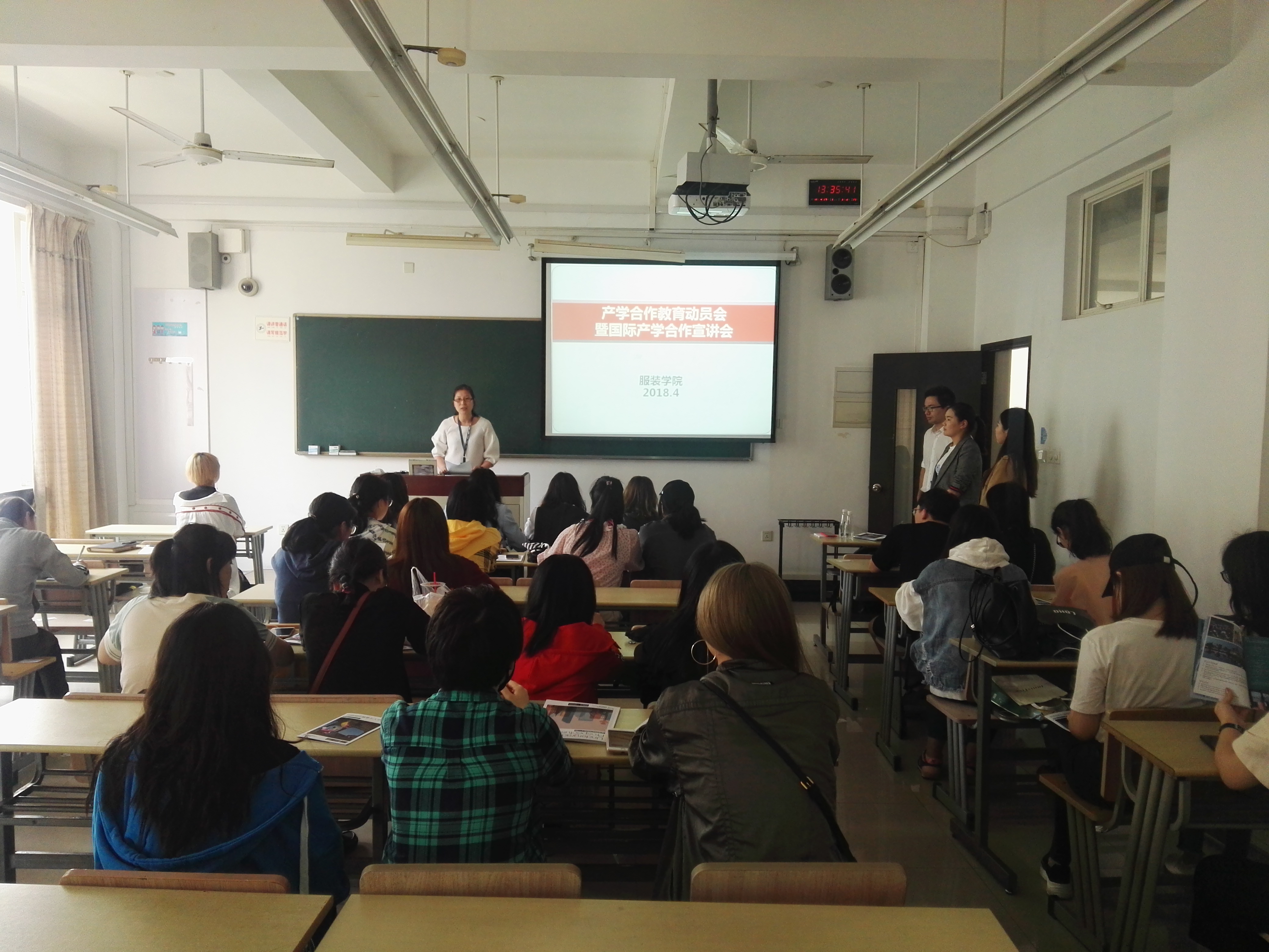 4月27日下午,服装学院在教学楼召开2018产学合作教育动员会暨国际产学合作宣讲会。学院产学合作教育班级员工及对国际产学合作项目有意向的员工参加会议。会议由学院产学合作教育负责老师沈智莉主持。