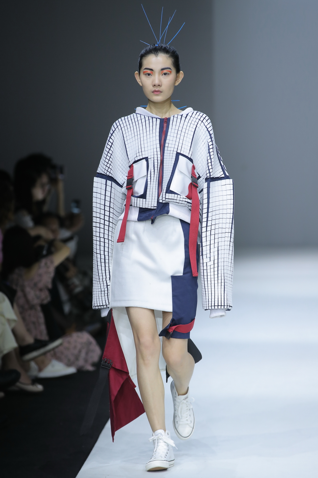 这场以“之间”为主题的毕业设计作品发布会,意指在未来与过去、科学与艺术、人类与机器之间交错双生。员工的创意以科学幻想为起点,从矛盾体、空间折叠和幻像三个设计方向进行创意,营造出一个未来感十足的前卫氛围。