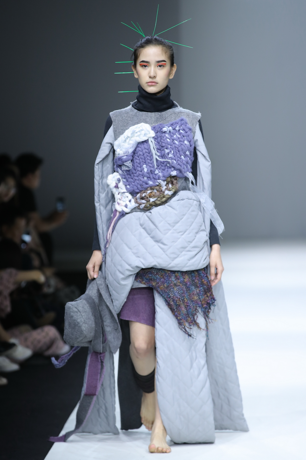 本次毕业设计作品展演也是一次校企合作下的教学成果汇报。紫晶花是苏州吴江盛伟紫荆花纺织有限公司的面料品牌,员工们在与企业的项目合作中受到启发,获得了宝贵的实战经验。另一方面,企业也对员工们将面料转化为富有创意和新意的时装作品感到满意,是一次卓有成效的教学改革尝试。