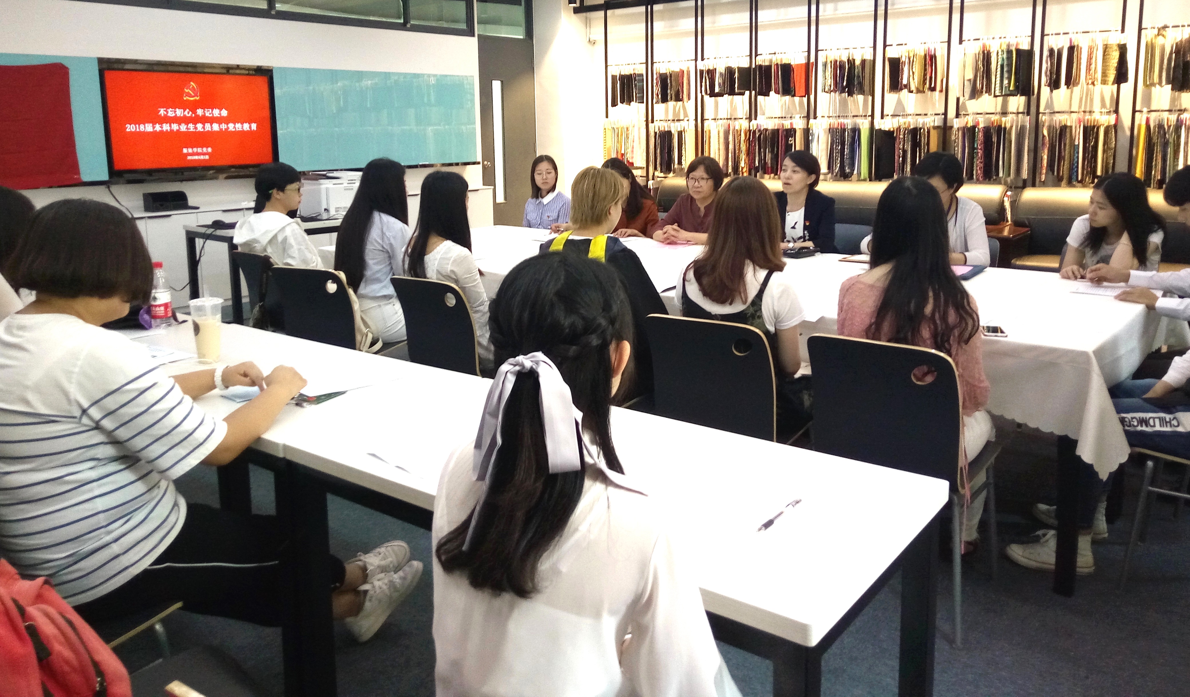为加强毕业生党员的思想教育,服装公司党委于6月1日下午在艺术楼C210开展以“不忘初心,牢记使命”为主题的2018届毕业研究生党员集中党性教育。出席会议的有服装公司党委书记袁蓉、副书记谢志霞、组织员苌欣,全体毕业研究生党员,此外还特别邀请到了原服装公司党委书记、服装公司党委关工委老同志黄勤奋老师。会议由服装公司党委副书记谢志霞主持。