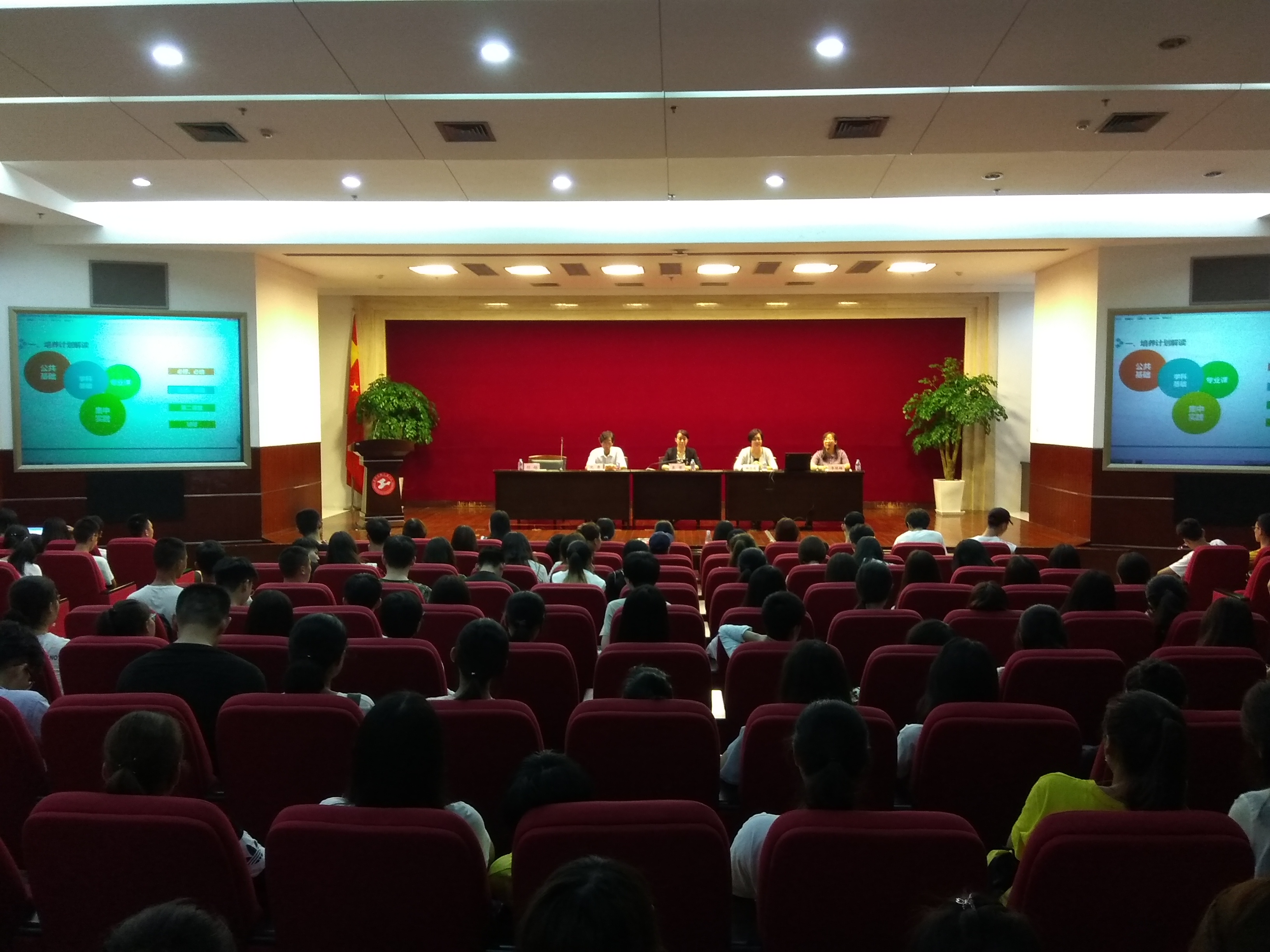 为了帮助2018级新生尽快了解学院情况,更好适应老员工活,9月14日下午,服装学院在图文信息中心第二报告厅举办2018级新生入学教育暨入党启蒙教育大会,服装公司党委书记袁蓉、副书记谢志霞、副经理沈勇、胡越、李艳梅、2018级新生辅导员、2018级全体新生参加了此次会议,会议由公司党委副书记谢志霞主持。
