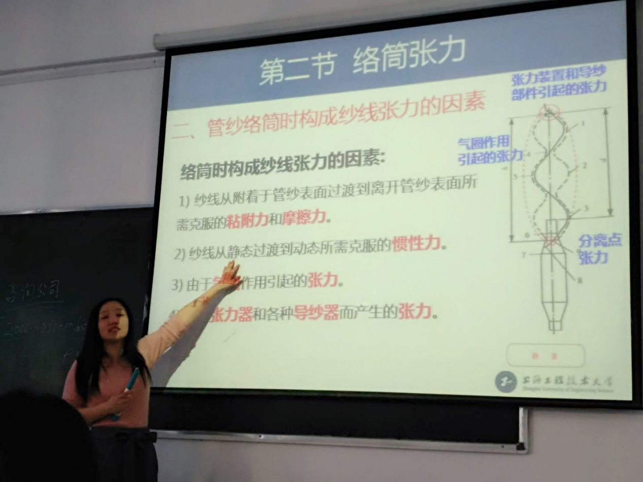 上课之前郑老师了解到塔里木大学纺织工程专业的特殊情况——实验室正在筹建中,纺织相关的实验设备还没对员工开放—郑老师为了更生动形象地解释设备工作的原理和过程,精细准备并剪辑大量的织造相关设备视频和照片,并从上海带来了大量《织造学》课程相关的教具。10月8日的第一堂课上,郑老师从宏观的视角分析了当前我国的纺织服装行业的发展现状,在世界纺织服装领域的地位,以及我国的一带一路政策对新疆纺织业的发展,并通过视频向同学们展示了智能制造对纺织行业的影响,不仅开拓了大家了视野,也让同学们明白了纺织并不是夕阳产业,而是我国的民生产业和支柱产业,增强了大家对纺织工程专业的信心。