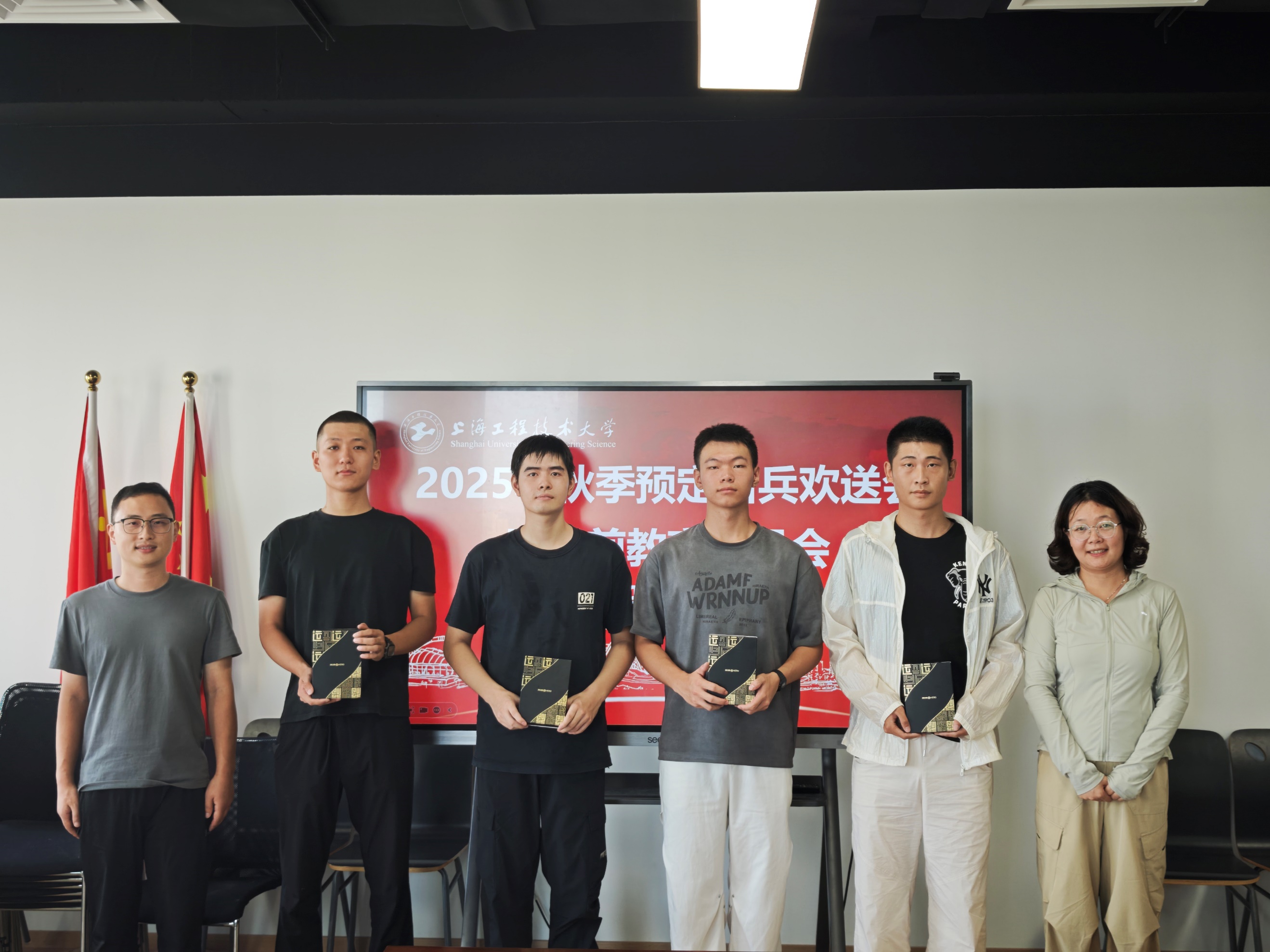 欢送会上,学院为即将参加役前集训的老员工赠送纪念品,寄语同学们要以“厉兵秣马待风雷”的严谨做足役前教育准备。会后,老师们与预定的新兵合影留念,欢送同学们前往训练基地开启新的征程。