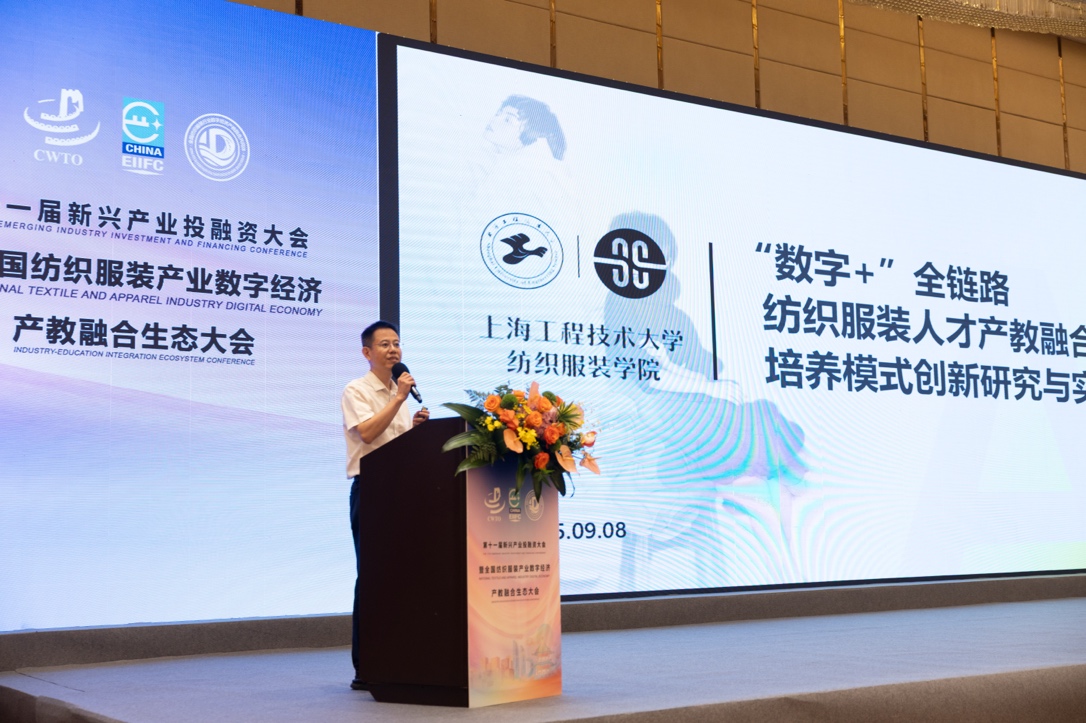 大会研讨环节,辛斌杰经理发表了《“数字 +” 全链路纺织服装人才产教融合培养模式创新研究与实践》主旨演讲,提出 “基础筑基 — 数字赋能 — 场景实战” 三位一体培养体系,介绍学院与企业共建实训基地、开发模块化课程、组建双师团队等举措。