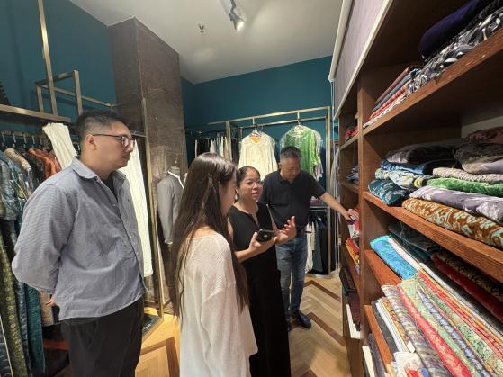 期间,师生还参观了上海丝绸集团藏馆,近距离观摩进博会相关珍藏品,深入了解丝绸文化与高端纺织产品的创新成果。双方围绕行业发展趋势、人才培养需求等话题展开热烈座谈,最终就非遗工艺数字化传承与创新达成共识,推动非遗文化活态传承,为学院数智化教学提供实践支撑。