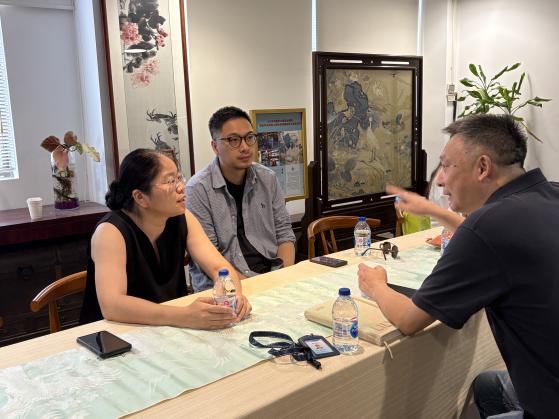 2025 年 9 月 15 日,学院李春晓副经理与诸侃祺老师携带研究生团队一同拜访上海丝绸集团,旨在聚焦非遗工艺数字化传承与创新核心方向,与企业深入洽谈相关合作项目,为后续产教融合实践奠定基础,通过联合开展教学实践、搭建资源共享平台等多元形式,实现专业技能与教学创新能力的协同进阶。此次访问得到了李一东总经理的热情接待。李一东总经理深耕面料开发领域近三十年,长期专注纺织服饰产品开发工作,曾承担多项国家外事产品开发任务,负责商务部国家茧丝办资金项目、上海市文化创意产业资金项目等重要课题,在行业内具有深厚影响力。
