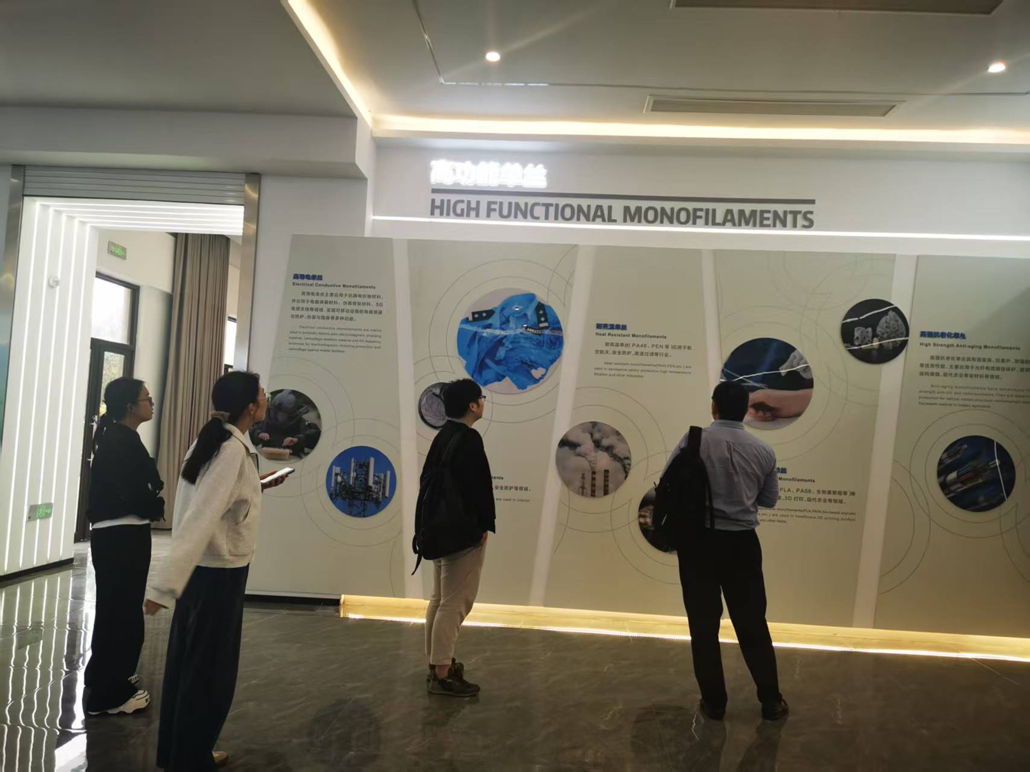 新帝克单丝目前与多所纺织高校建立了长期产学研合作。通过共建省级企业技术中心和特种单丝工程技术研究中心,校企双方实现了从基础研究到技术应用、成果转化的高效对接。这种深度的产教融合,不仅为企业带来了31项发明专利等丰硕成果,更精准地培养了契合产业需求的高素质工程人才。随后参观了新帝克单丝的产品展厅,从直径细至0.05毫米的医疗用单丝,到高强度的工业过滤材料,丰富的产品阵列直观展示了企业深厚的技术储备。