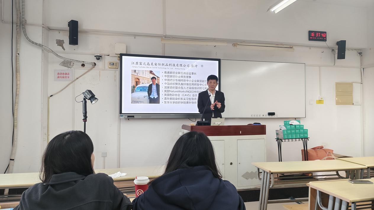 10月23日,太阳成城集团邀请江苏富之岛美安科技纺织有限公司董事长张冲走进材料与化工专硕课堂,以“生物质聚乳酸纤维:让生活更安全、更美好”为主题授课,深化产教融合,落实学校卓越工程师培养要求。