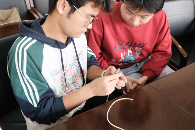 本次活动特别邀请了学院关工委委员孙荪老师担任指导。孙老师首先为大家梳理了中华编织艺术悠久的历史脉络,从结绳记事的远古智慧,到精美绝伦的宫廷织造,再到融入现代生活的时尚设计,生动诠释了“承脉”的深刻内涵。在她的悉心指导下,师生们纷纷动手,