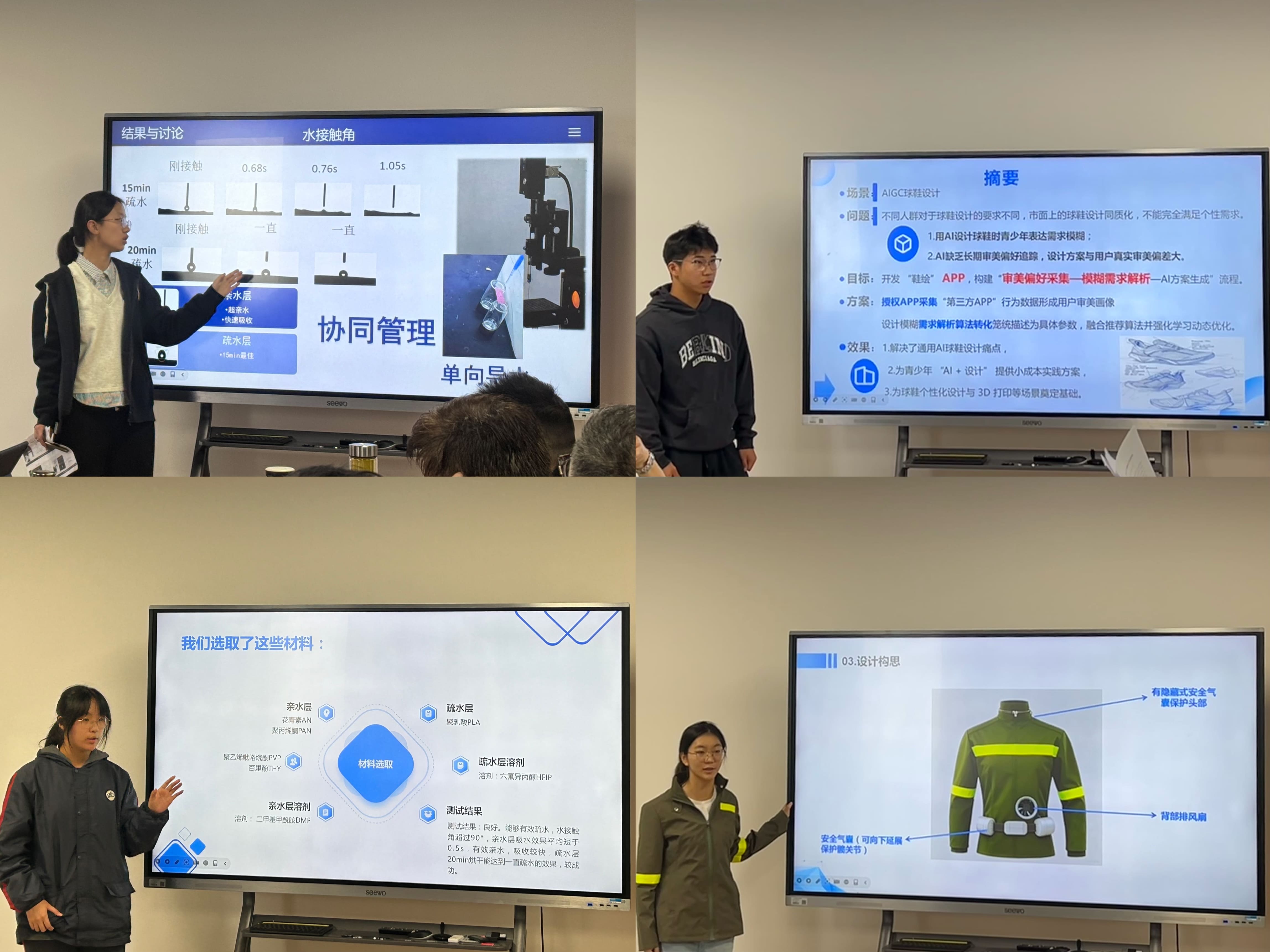 答辩会伊始,谢志霞副站长介绍参会嘉宾,胡越副站长明确本次答辩的评审细则。随后21位学员依次答辩,从植物染工艺创新等环保可持续设计,到光敏/温敏材料夜间骑行服等智能材料应用,再到PH响应变色纳米纤维伤口敷料等医疗健康防护方案,继而延伸至海派旗袍立领元素融合现代女装的传统工艺创新。各位同学充分展示了自己在工作站学习后取得的丰硕成果及实践感悟。
