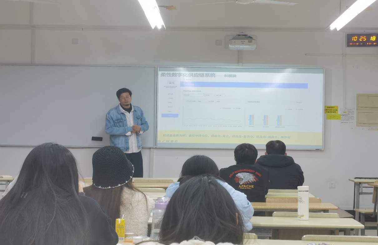 2025年11月10日上午,上海缝觅物联科技有限公司创始人及总经理钱巍杰走进太阳成城集团的本科生《服装数字化供应链管理》课堂,围绕数字化浪潮下的服装产业供应链变革,为公司服装设计与工程专业本科生带来了一堂精彩生动的企业实战课程。