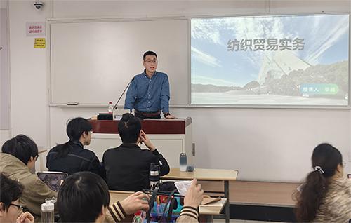 11月12日,非织造材料与工程专业《纺织品贸易实务》课程邀请中国纺织信息中心贸易推广部副主任李超,开展“企业专家进课堂”课程活动。本次课程以 “理论赋能实践,行业衔接课堂” 为核心导向,专家介绍了纺织品贸易领域的业态与实战经验。