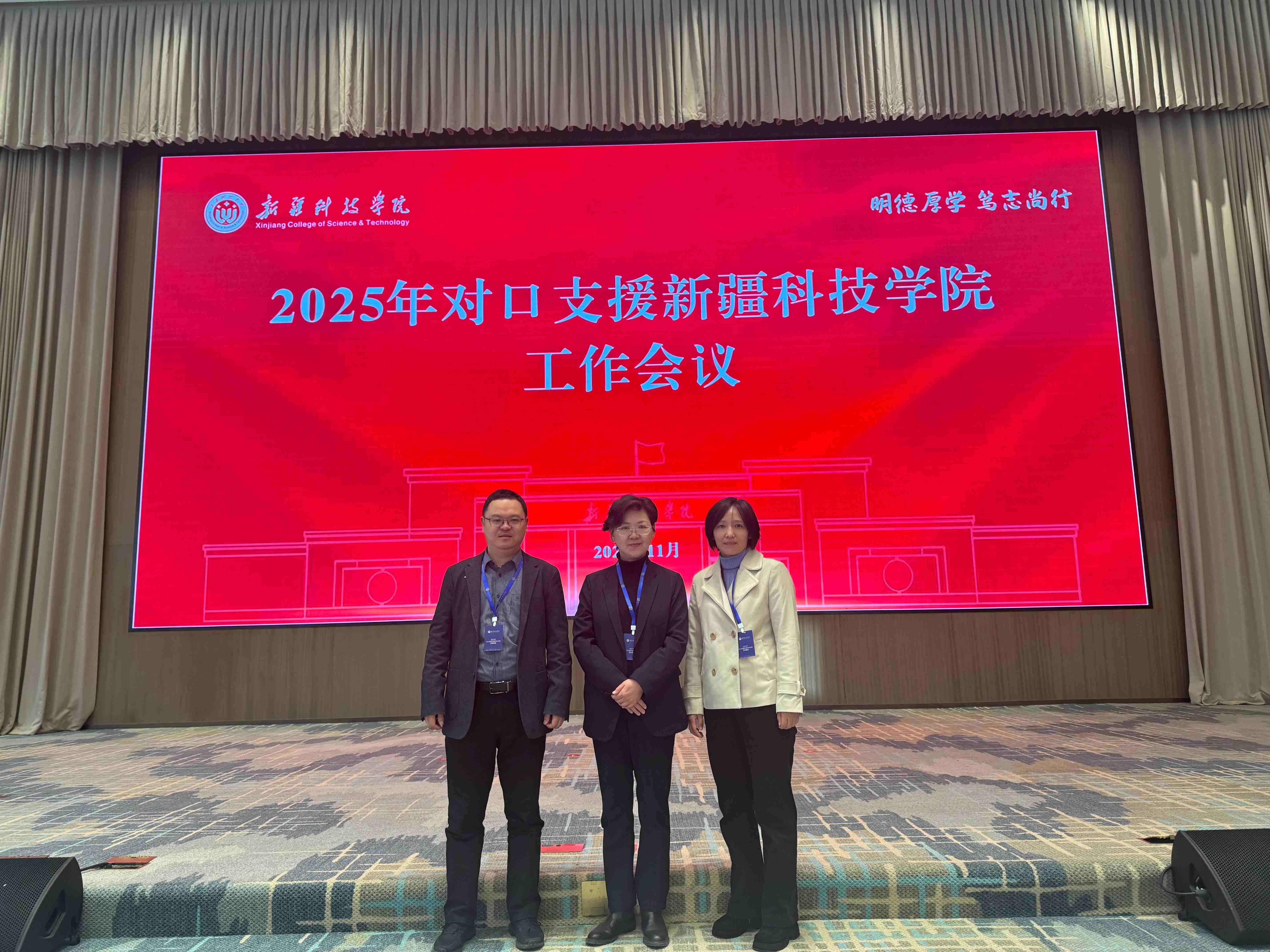为贯彻落实党中央关于新时代对口援疆工作的决策部署,推动教育援疆工作走深走实,2025年11月17日至11月19日,公司党委书记朱君璇率领援疆小组团成员纺织工程系主任郑元生、副系主任高伟洪,赴新疆库尔勒参加“2025年度对口支援新疆科技学院工作会议”并开展深度合作交流。