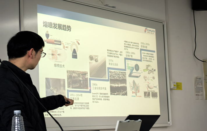 付小栓经理本次授课聚焦熔喷非织造技术,结合企业实际案例,生动讲解从原料选择到产品优化的全流程,并深入剖析该技术在医疗防护、环保过滤等领域的应用前景。课堂上,同学们被付经理分享的鲜活案例和行业洞察深深吸引,互动环节气氛热烈。大家就技术难点、行业发展趋势及职业能力要求等问题踊跃提问,付经理均给予了细致解答,并鼓励同学们夯实基础、勇于创新,未来在广阔的产业舞台上施展才华。