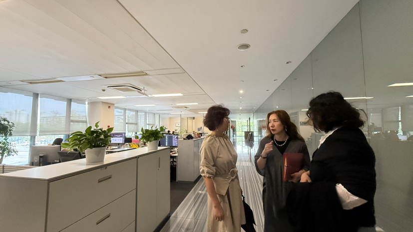 在璟丰服饰技术总监和人力资源部总监的陪同下,产业小组参观了企业现代化生产车间、智能仓储系统及设计研发中心。在随后的座谈会上,双方围绕人才培养、科研攻关、实习就业等议题展开深入探讨。双方初步达成共建“校外实践基地”合作计划,并对开展横向课题研究表达出积极诚恳的合作意愿。