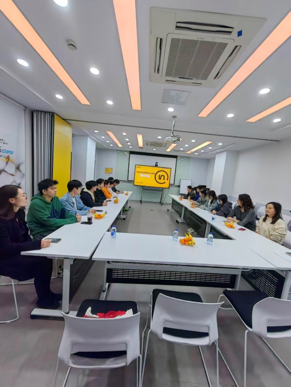 公司共有 12 名员工在天祥实习。座谈会上,企业带教导师首先对员工表现给予高度评价,称赞同学们专业功底扎实、学习与英文能力突出,仅需一天即可完成岗位培训并承担工作任务,充分展现出优良的职业素养与高效的职场适应能力。随后,12 名实习生依次分享了各自所在部门及具体岗位职责。从交流中能清晰看出,同学们已深度融入企业团队,全程参与了样品准备、实验测试、数据处理、系统报表填写、报告出具及客户售后服务对接等核心工作环节,实践能力得到充分锻炼。